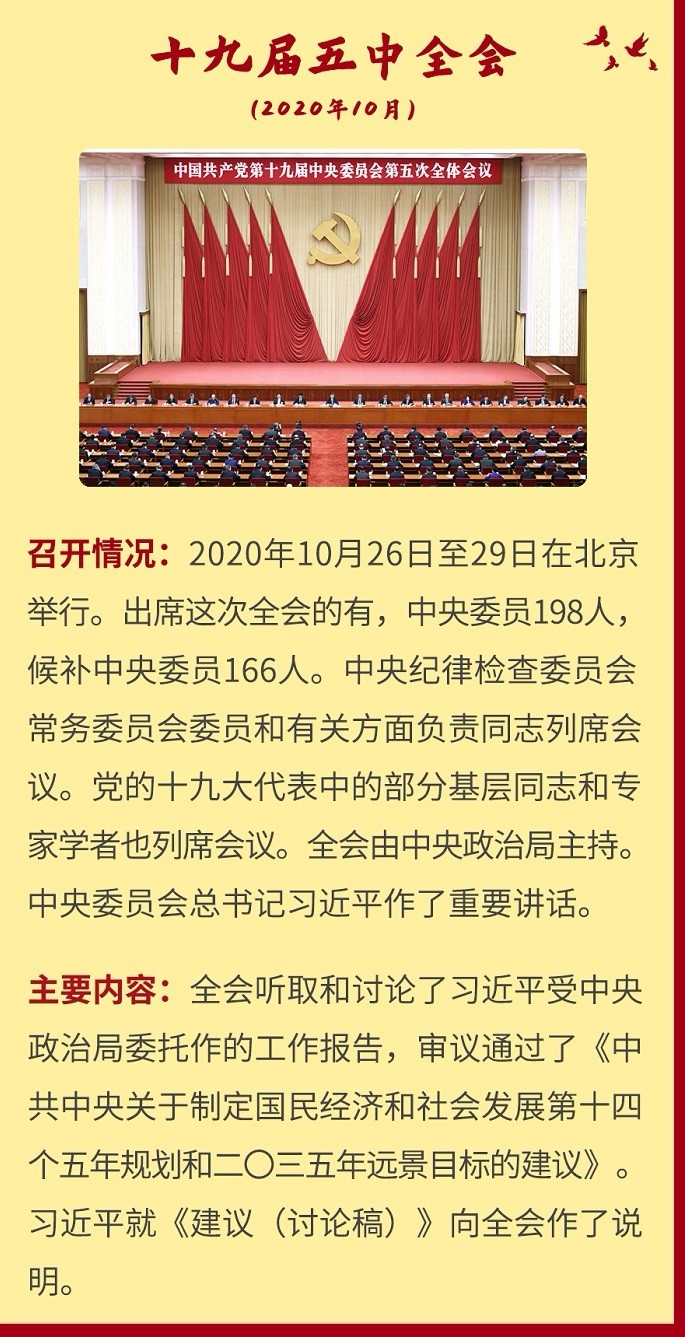 黨的十九大以來的5年,是極不尋常、極不平凡的5年。5年來,以習(xí)近平同志為核心的黨中央審時度勢、守正創(chuàng)新,敢于斗爭、善于斗爭,團結(jié)帶領(lǐng)全黨全軍全國各族人民有效應(yīng)對嚴峻復(fù)雜的國際形勢和接踵而至的巨大風(fēng)險挑戰(zhàn),以奮發(fā)有為的精神把新時代中國特色社會主義不斷推向前進,攻克了許多長期沒有解決的難題,辦成了許多事關(guān)長遠的大事要事,推動黨和國家事業(yè)取得舉世矚目的重大成就。黨建網(wǎng)微平臺梳理了中國共產(chǎn)黨十九屆中央委員會歷次全體會議概況,邀您一起學(xué)習(xí)了解。