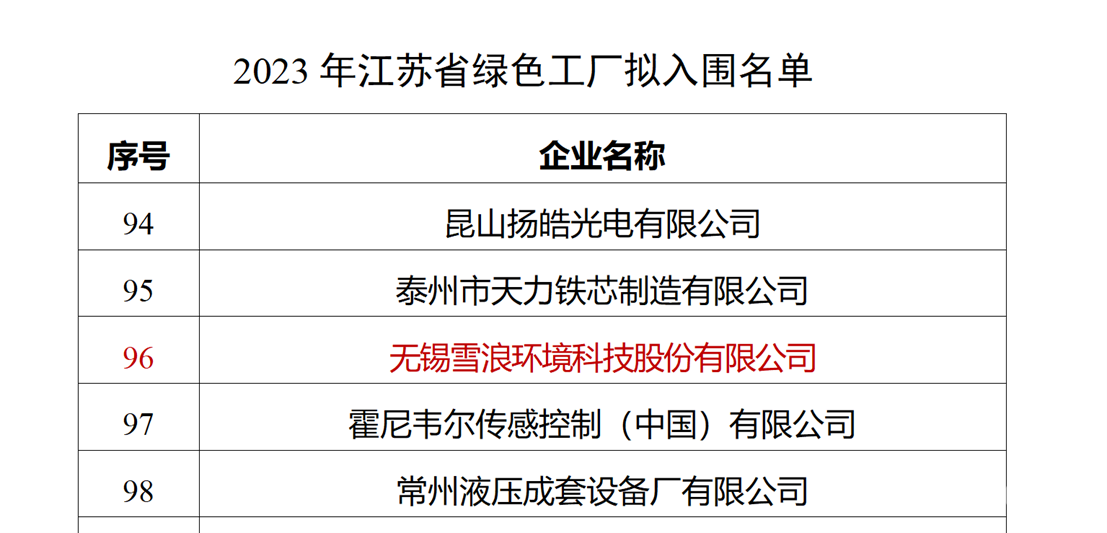 會員動態(tài) | 雪浪環(huán)境獲評江蘇省綠色工廠
