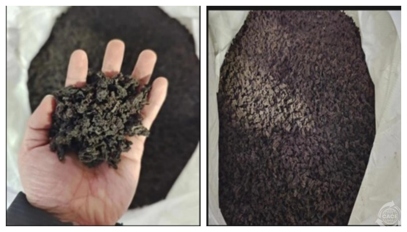 脫水污泥通過輸送裝置提升至污泥切條機,污泥切條機把污泥造粒成型,這能夠保證濕污泥顆粒與循環風的接觸面積最大化。造粒成型的污泥顆粒均勻攤鋪在干化機網帶上,與穿流的干熱循環風充分接觸進行熱量交換,加快了干化傳熱、傳質推動力,水分逐漸被蒸發,污泥慢慢被干化。干化后的污泥顆粒利用底層的刮板運送到卸料口,由干化機底部排出。
