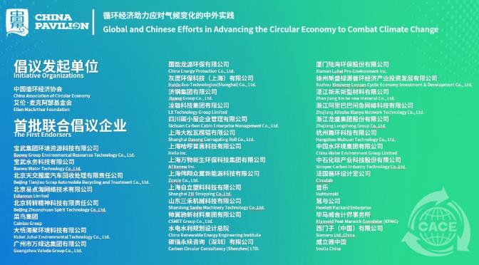 在聯合倡議環節,中國循環經濟協會和艾倫麥克阿瑟基金會共同發起了“加速發展循環經濟支持氣候行動的企業倡議”,倡議由中國循環經濟協會副會長、寶武集團環境資源科技有限公司董事長陳在根聯合三十余家企業共同發布。倡議呼吁全球企業加強合作,攜手共進,推動價值鏈的循環轉型,重塑經濟增長模式,實現經濟社會高質量發展與生態環境高水平保護的協同并進,為應對氣候變化、實現全球可持續發展目標作出貢獻!