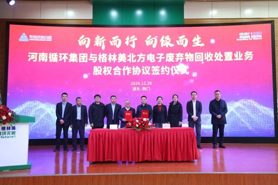 2024年12月26日上午,以“向新而行,向綠而生”為主題的格林美與河南循環科技產業集團有限公司(以下簡稱“河南循環集團”)關于格林美控股孫公司股權合作協議簽署儀式于格林美荊門園區國際會議廳隆重舉行。河南循環集團董事長李卓英先生、格林美集團董事長許開華教授出席并簽署協議,新華社、上海證券報、東方證券等媒體金融機構受邀參加儀式。
