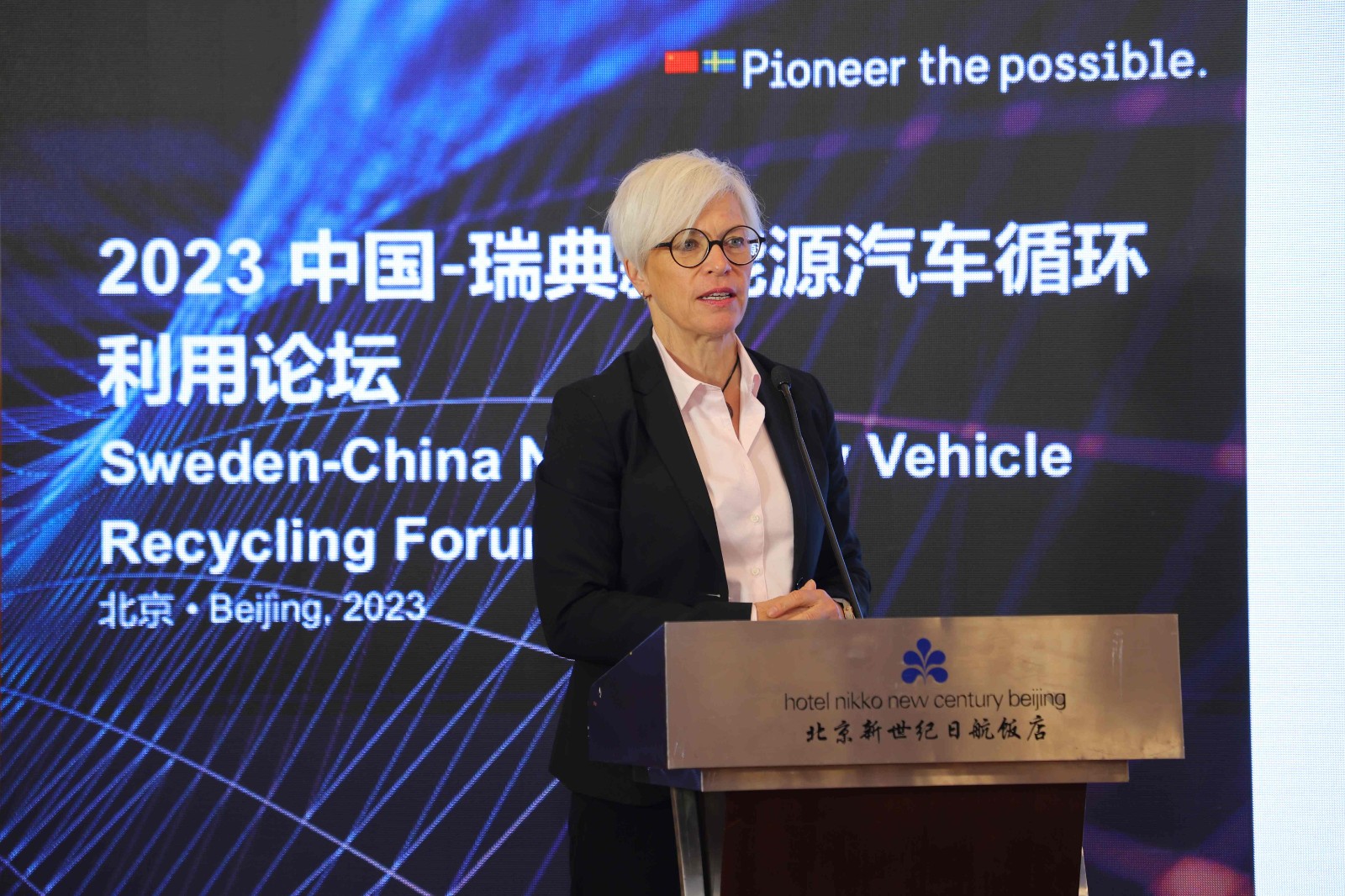 2023年11月23日,中國-瑞典新能源汽車循環利用論壇在北京舉行。此次論壇由中國循環經濟協會、瑞典駐華大使館、瑞典貿易與投資委員會共同主辦,中國循環經濟協會新能源汽車循環利用專業委員會協辦。論壇邀請中瑞(典)政府、研究機構、大專院校、行業組織以及先進企業的嘉賓和代表,圍繞報廢汽車回收拆解、汽車零部件再制造、動力電池綜合利用,關鍵金屬材料回收利用等新能源汽車重點領域,就相關政策、產業動態、最佳實踐等內容進行了深入交流與分享。中國循環經濟協會常務副會長趙凱、瑞典駐華大使館二等秘書尹霖(Linn Engvall)出席本次論壇并致辭。論壇由中國循環經濟協會國際合作部主任馬金津主持。