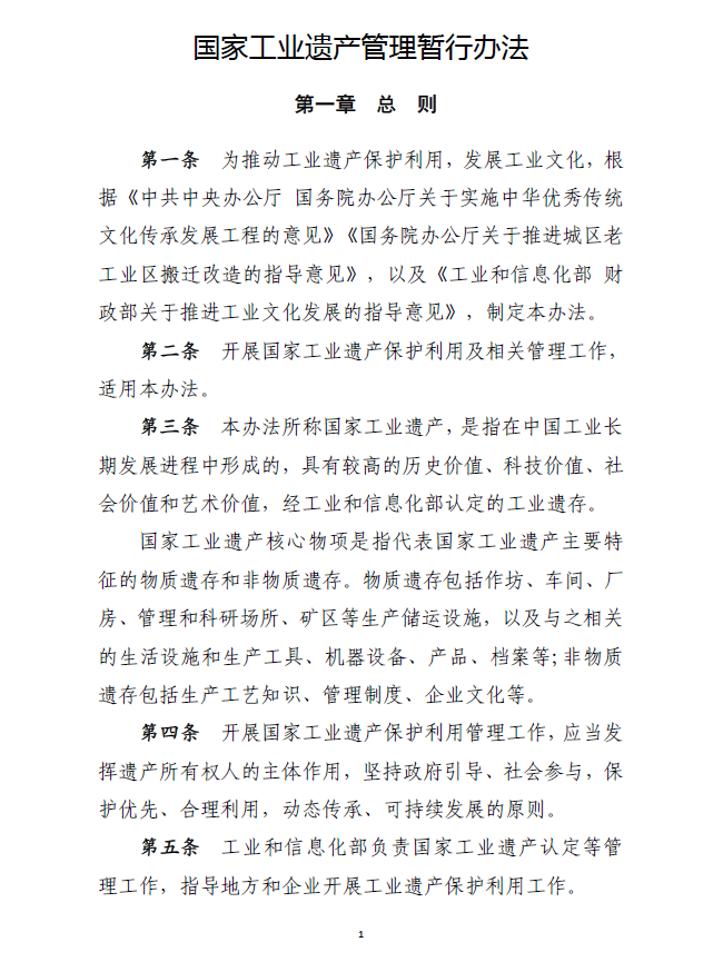 現將《國家工業遺產管理暫行辦法》印發給你們,請遵照執行。